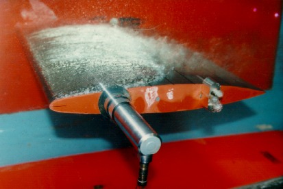 Photo of a foil with a thickness max on the rear distributing its lift. better than the rudder (vertical) which supports it. It is a good example of the importance of the choice of profiles